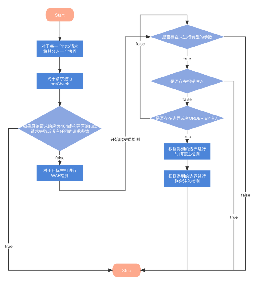 通过将参数转型前置放在实际注入漏洞检测前可以省去无用的请求数,因为在检测到参数转型后就没必要继续接下来的检测了。