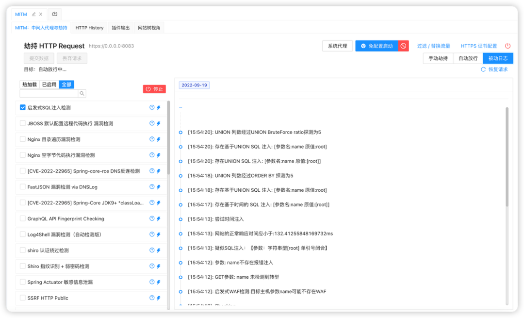 在这种情形下,我们就需要开发一款应用于被动扫描场景下的SQL注入检测工具。而Yakit作为一个综合渗透测试平台,提供了用户友好型的API接口,可以很方便的实现SQL漏洞检测功能,和SQL注入启发式检测所需的核心功能。