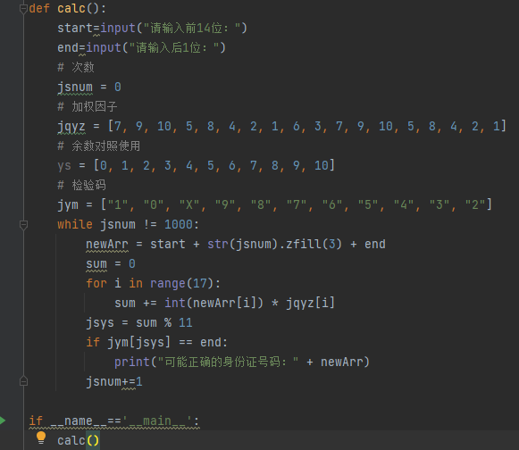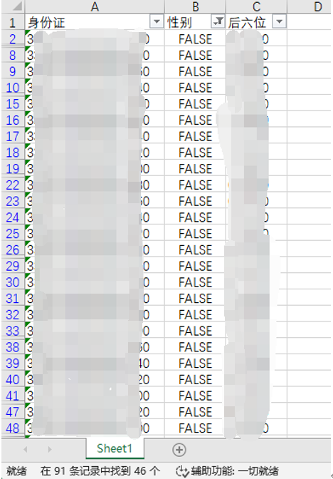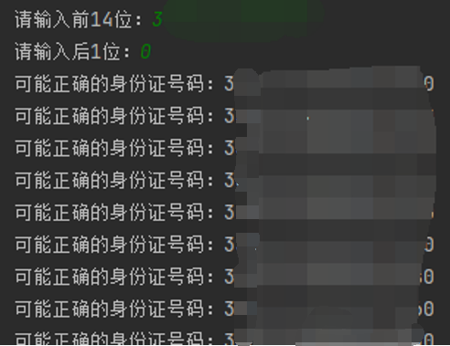 根据以上信息对已有身份证进行计算,可将1000个结果缩小至50左右,因为根据以上公式,1000个结果只有100个正确,同时有性别校验,再除以2,数量已减少到50左右。![]()