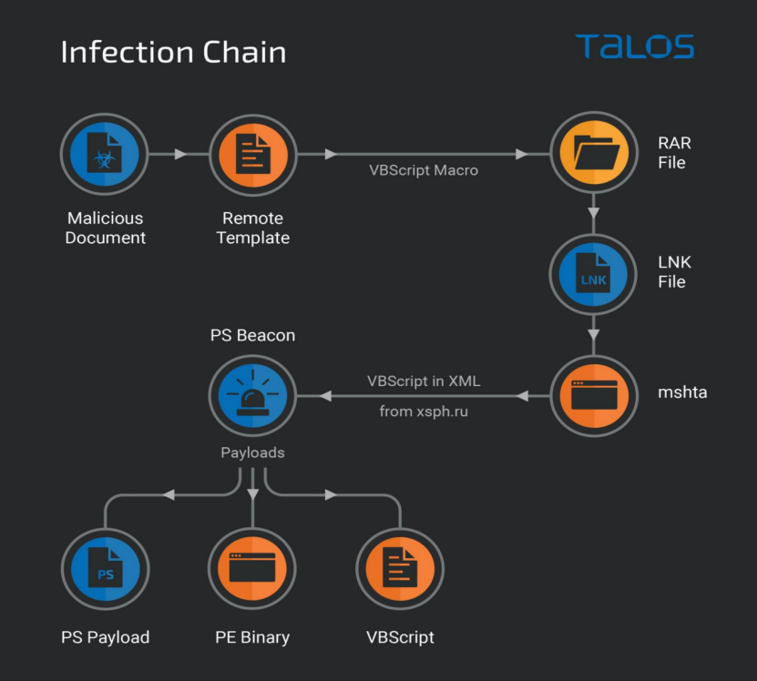 近日,思科研究人员披露了具有俄罗斯背景的APT组织Gamaredon Group,针对乌克兰政府、国防和执法机构的攻击活动。攻击者使用网络钓鱼电子邮件,传递包含带有恶意VBScript宏脚本的文档附件,诱导受害者打开文档,下载宏并通过LNK执行MSHTA.EXE,进而下载并解析远程XML文件以执行恶意PowerShell脚本,随后在受感染的端点上下载并激活下一阶段的有效载荷开展攻击活动。鉴于此次攻击活动在TTP、恶意软件和基础设施方面,与此前乌克兰计算机应急响应团队(CERT-UA)披露的Gamaredon Group的一系列攻击活动存在重叠,因此将此次攻击归因于GamaredonGroup。