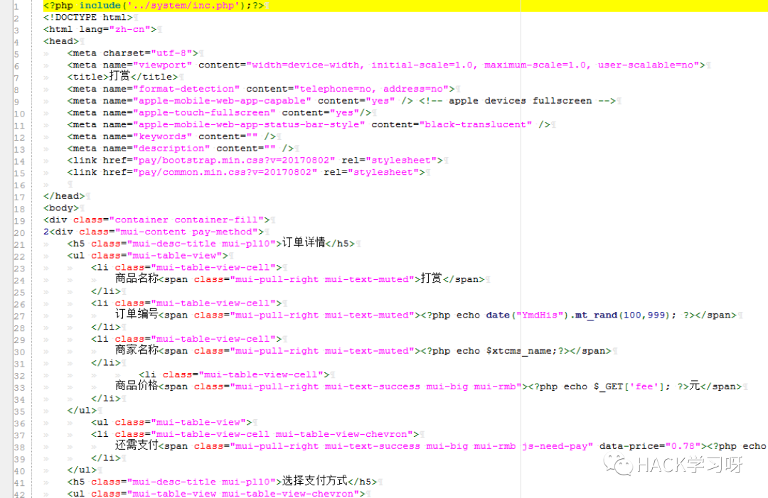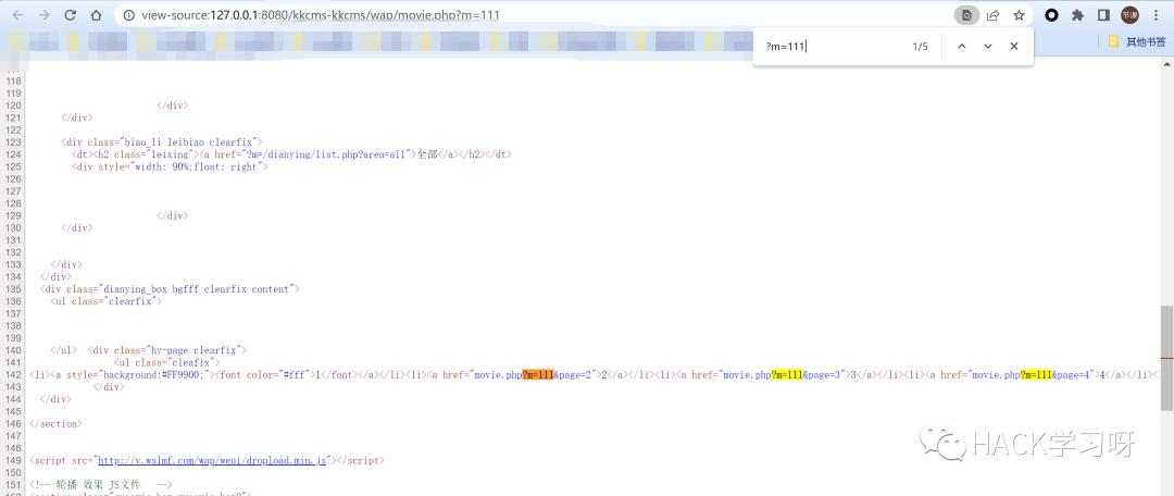 存在可控参数$_GET['m']和$_GET['page'],开头引用了inc.php,试着找一下输出语句。