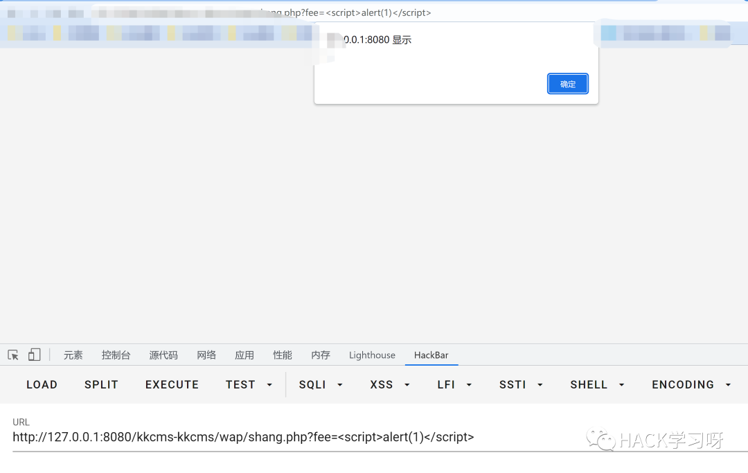 $_GET['fee'],因此我们这里直接传入一个xss语句尝试触发xssfee=<script>alert(1)</script>