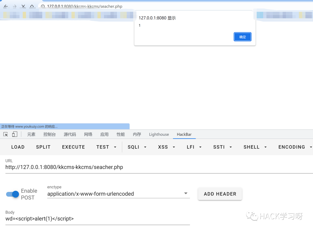 可以发现这里这个变量$q直接被输出了,这个$q是POST上传的wd参数,因此我们这里POST上传wd参数,给它赋值一个xss语句的话,应该是可以进行XSS的,我们试着去构造一下