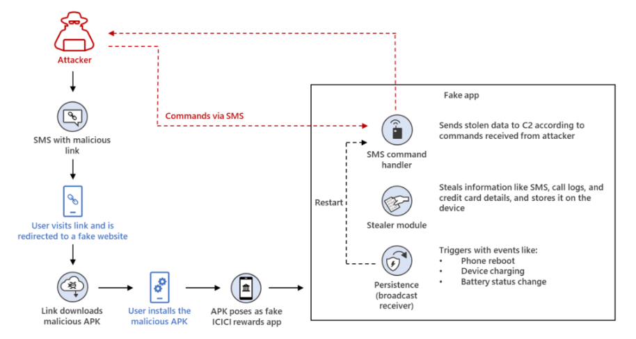 研究人员分析了通过SMS活动分发的Android信息窃取软件的最新版本。这个新版本伪装成银行奖励应用程序,具有额外的远程访问木马(RAT)功能,目前被用于针对印度银行的客户。SMS活动发送的消息包含指向Android信息窃取恶意软件的链接。该恶意软件的RAT功能允许攻击者拦截重要的设备通知,例如传入消息,这是为了捕获银行和金融机构经常使用的双因素身份验证(2FA)消息。
