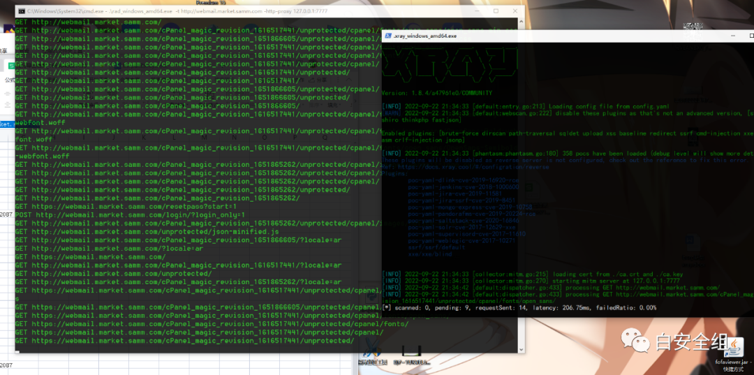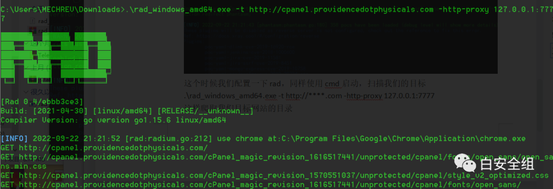 这个时候我们配置一下rad,同样使用cmd启动,扫描我们的目标