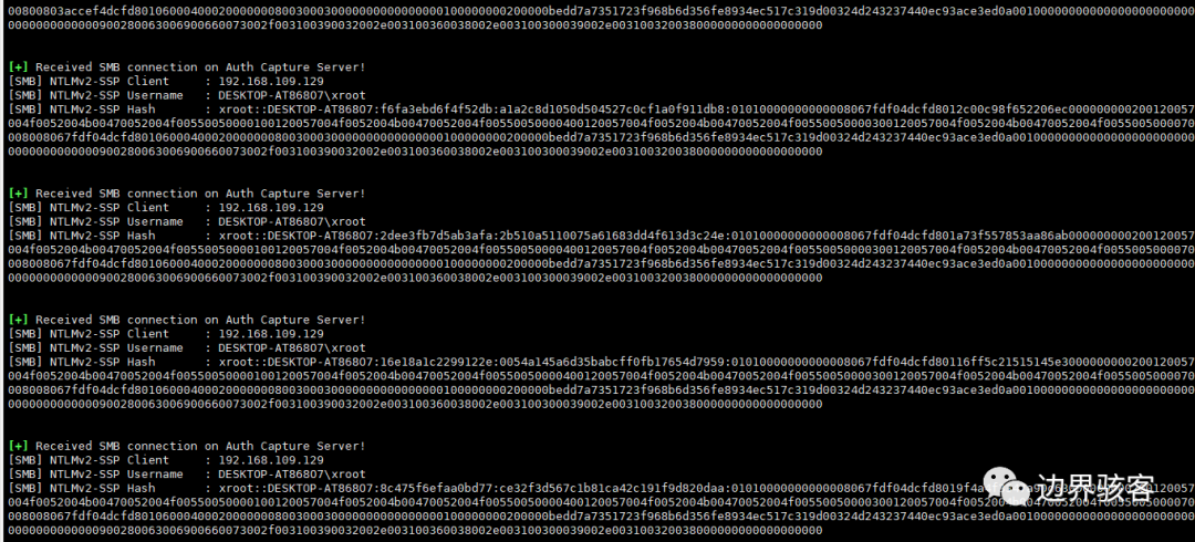 use auxiliary/server/capture/smb监听结果发现可以抓到net-ntlm: