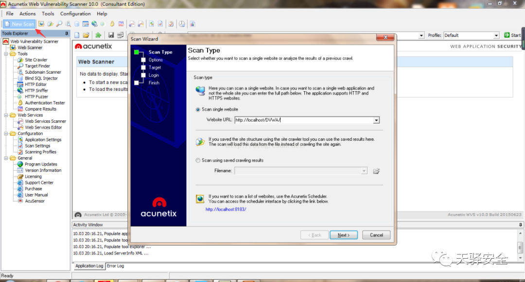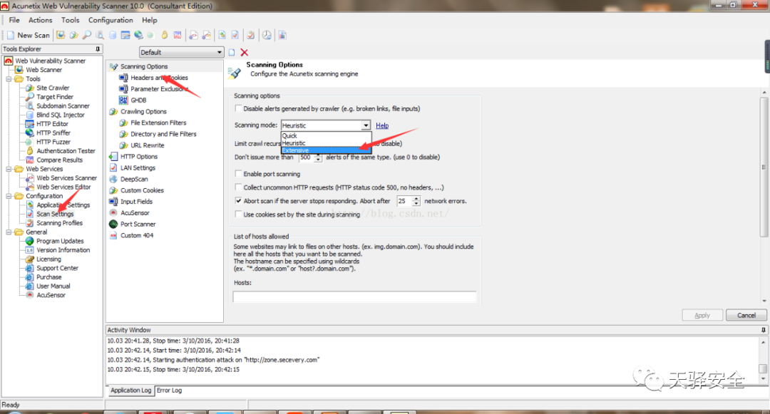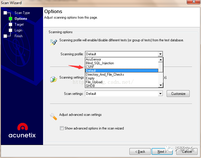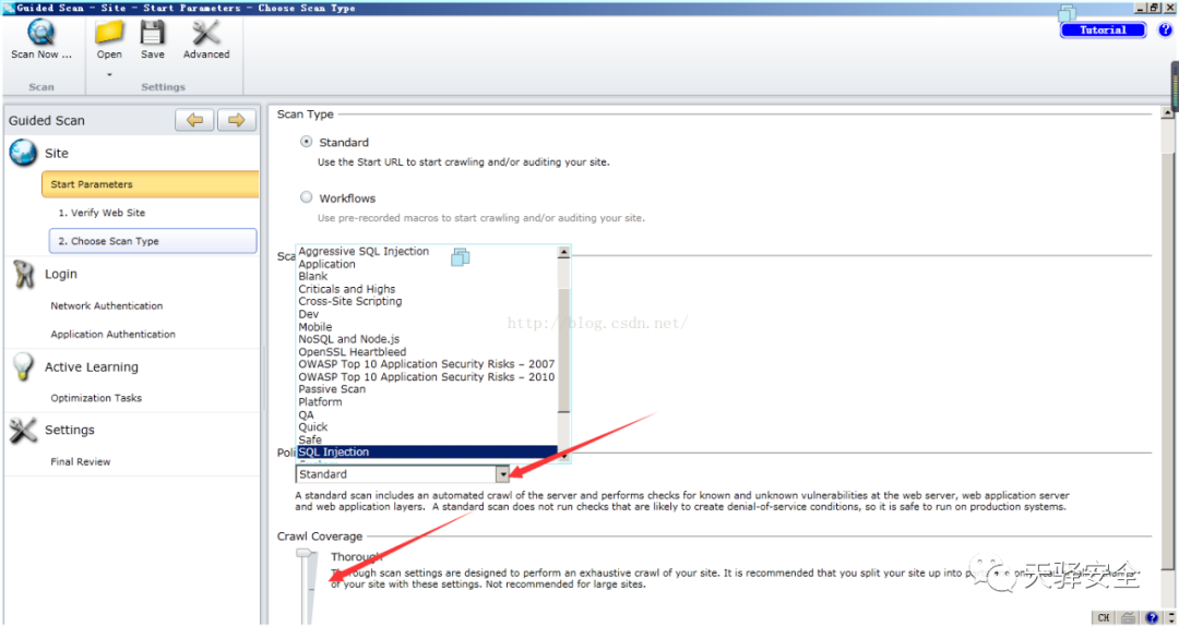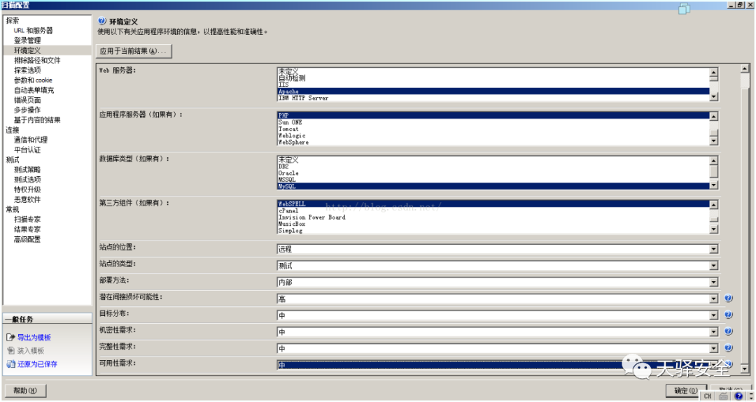 在这里选择与AWVS类似选择扫描类型和扫描深度。