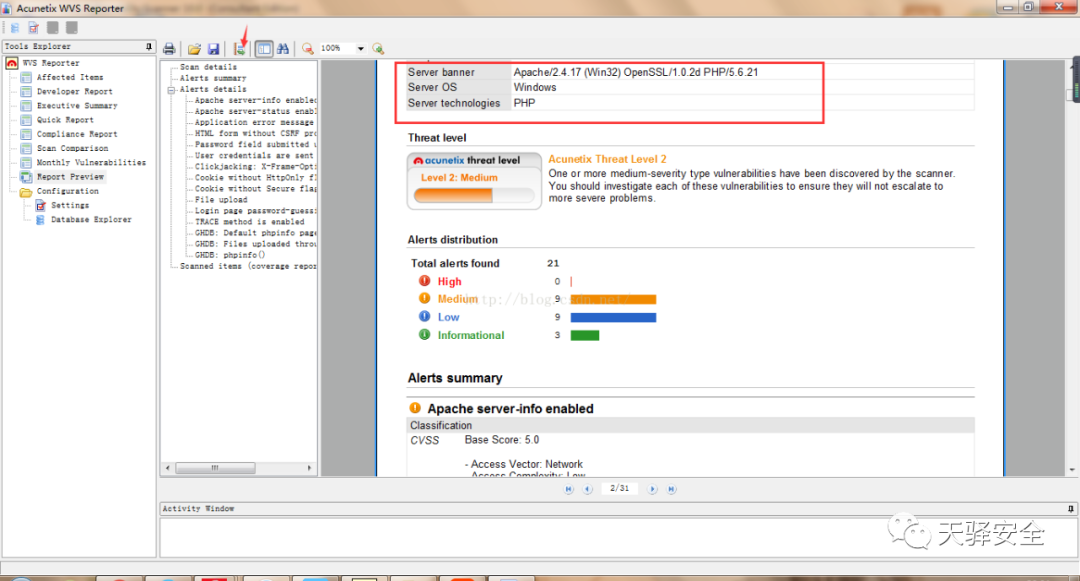 报告包含所有检测的结果和对每个漏洞危险的详细介绍和建议解决方法。非常方便易懂,但是工具不能代替人工,作为一名合格的安全人员一定要多每个危险进行测试后对报告进行修改后重新做一份报告。![]()