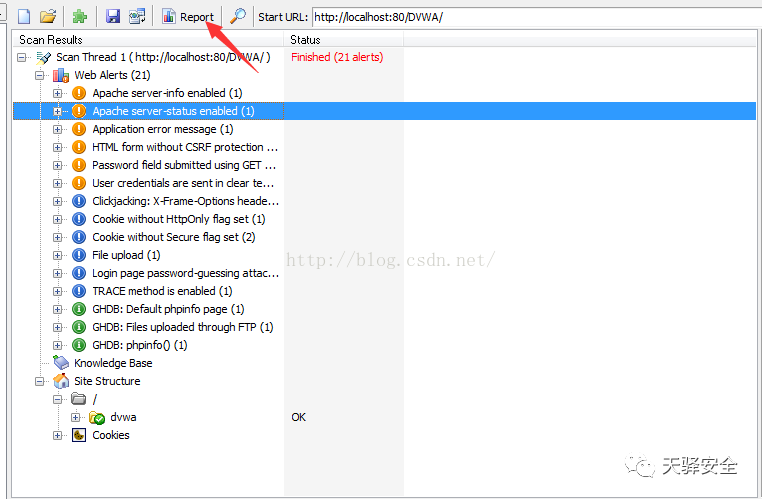 当扫描结束后可以点击report生成电子报告