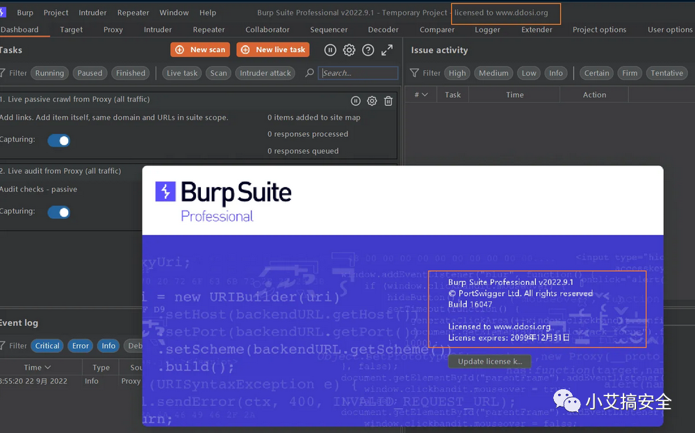 关注公众号《小艾搞安全》后台回复"burp202209"获取下载地址