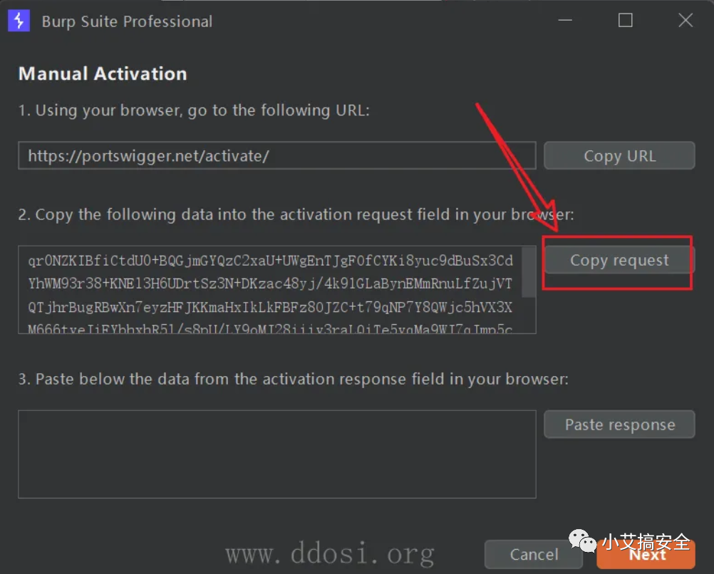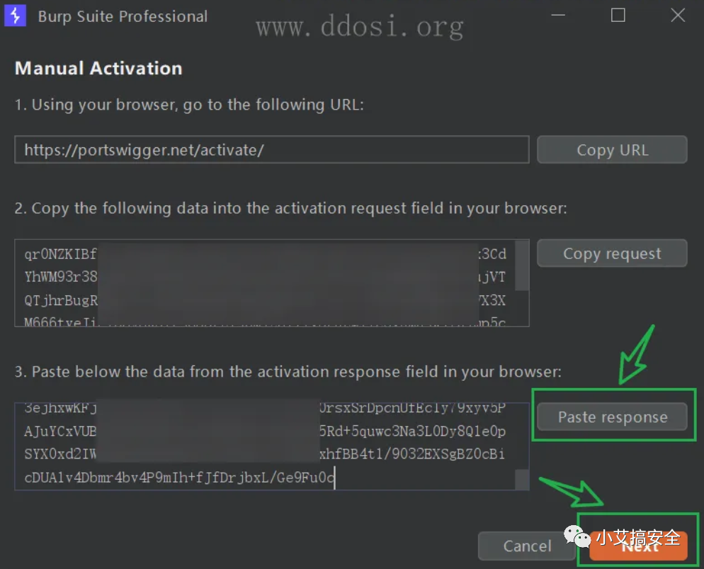 ⑩到如下窗口点击Paste response并点击next