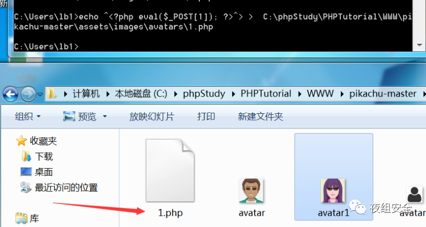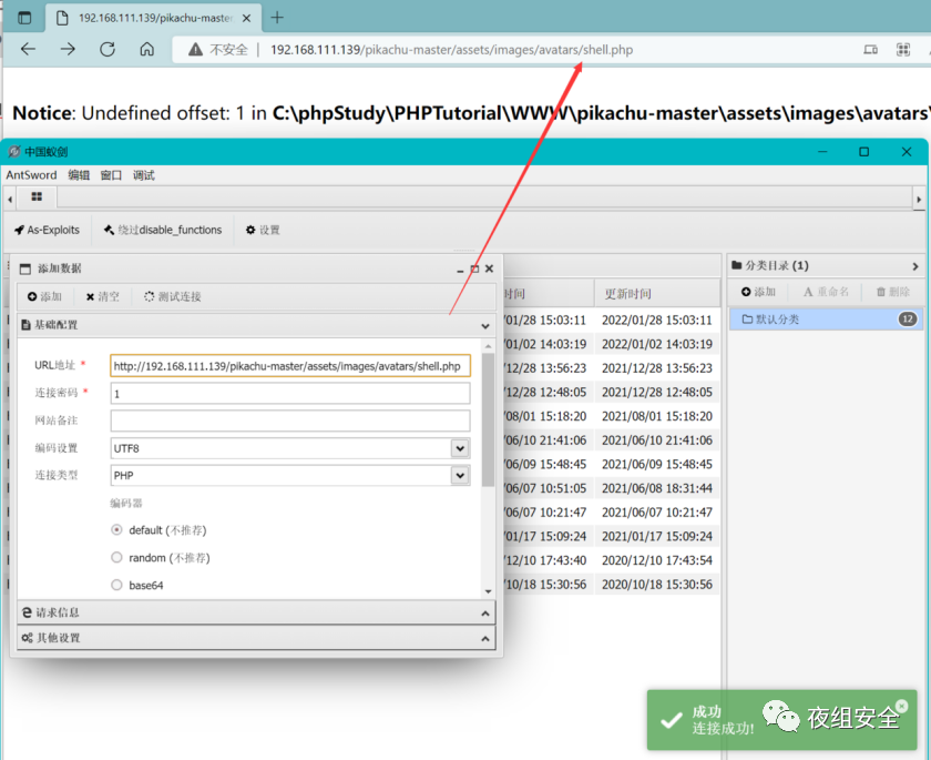 成功写入webshell到pikachu1.png文件的同级目录下,并且解析成功。