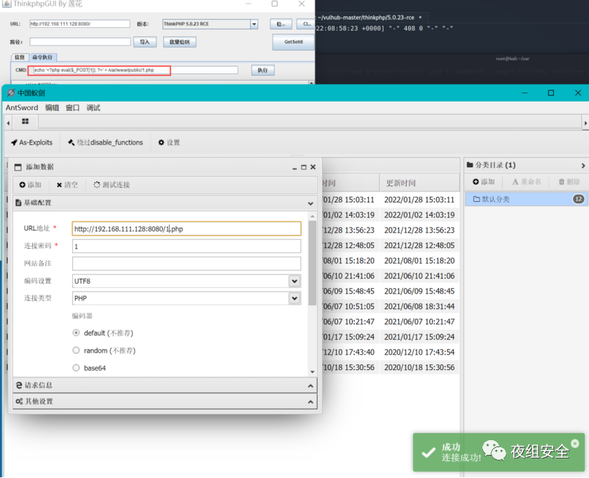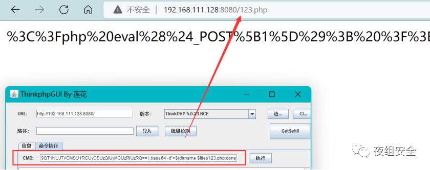 php的一句话里有问号,直接写会报错,这里通过base64编码分两步写入。