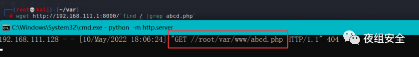 服务器开启监听,wget命令请求服务器监听地址,可以将命令执行的结果带出。