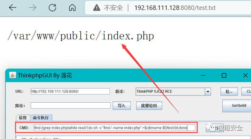 使用以下命令,可以在查询文件的同级目录下,写入一个test.txt文件,访问该文件可以看到我们命令执行的结果。