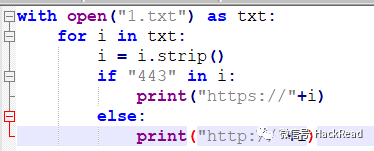 因为要使用Rad爬虫,所以我们要对资产进行整理,要使他符合Rad的规则。我们要把上图红框框里的IP加上http://或者https://,我记得之前学校有考过一个题,就是在excel表中批量给单元格加同样的内容,不过我忘了,这里就用python解决好了,脚本如下