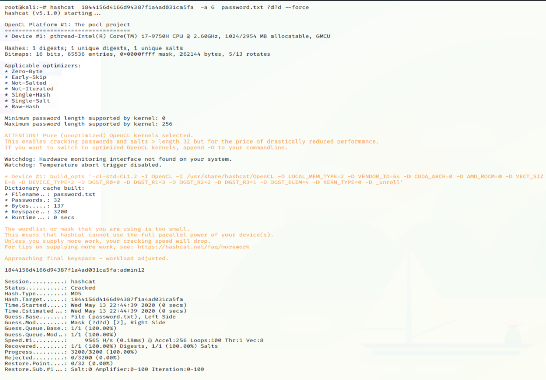 hashcat -a 6 1844156d4166d94387f1a4ad031ca5fa password.txt ?d?d?d --force