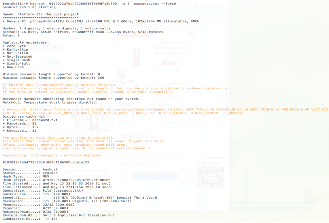 Hashcat 是一款用于破解密码的工具,据说是世界上最快最高级的密码破解工具,支持 LM 哈希、MD5、SHA 等系列的密码破解,同时也支持 Linux、Mac、Windows 平台。