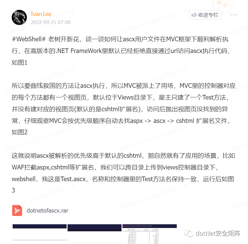 dotNet安全矩阵知识星球 — 聚焦于微软.NET安全技术,关注基于.NET衍生出的各种红蓝攻防对抗技术、分享内容不限于 .NET代码审计、 最新的.NET漏洞分析、反序列化漏洞研究、有趣的.NET安全Trick、.NET开源软件分享、. NET生态等热点话题、还可以获得阿里、蚂蚁、字节等大厂内推的机会.