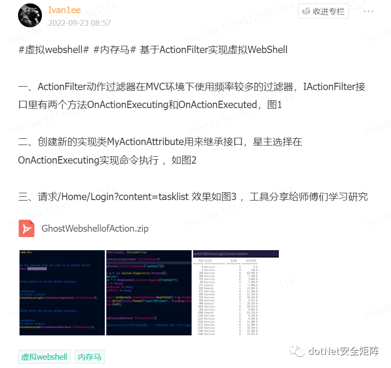 1. 代码审计之文件读取2. ASCX Webshell在MVC下的使用场景3. MVC代码审计之权限绕过场景4. ActionFilter实现内存马为了更好地应对基于.NET技术栈的风险识别和未知威 2022-9-25 09:2:16 Author: dotNet安全矩阵(查看原文) 阅读量:18 收藏