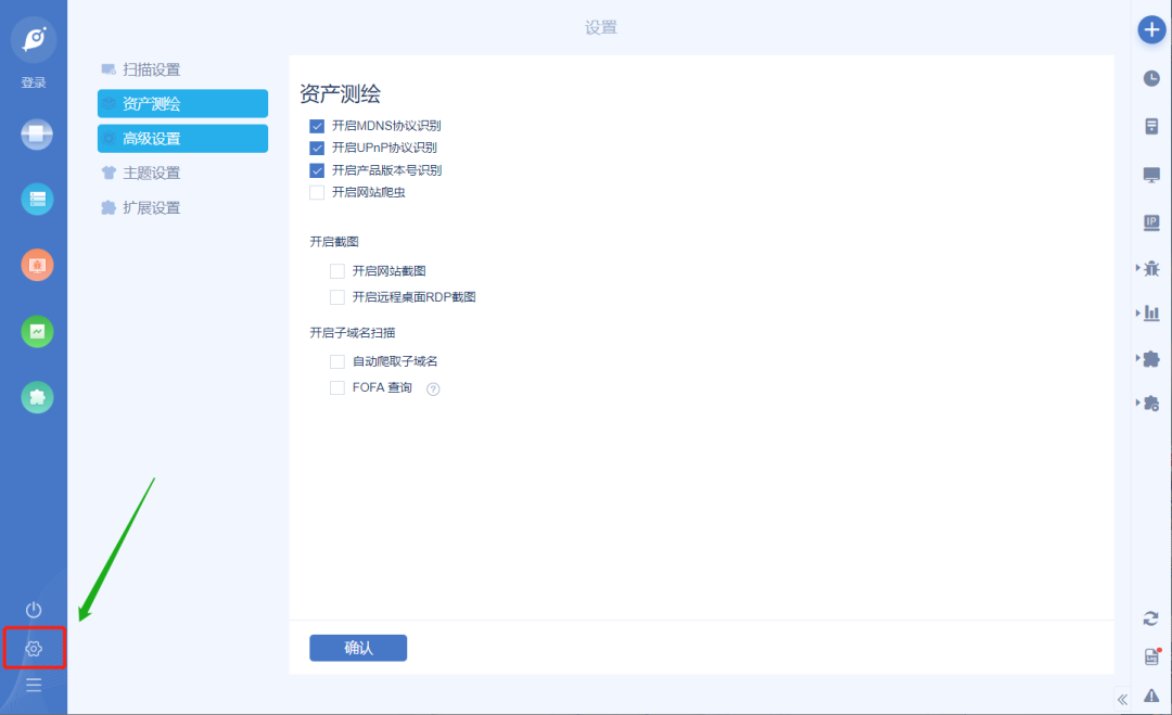 能开启很多功能,比如网站截图、结合fofa的apikey