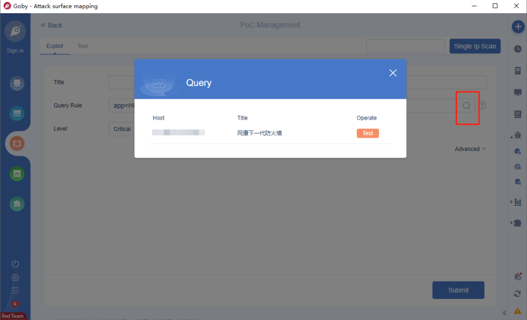 在资产扫描完成的界面,输入query点击放大镜可以进行资产匹配,用来确定自己写的query可以正确匹配。