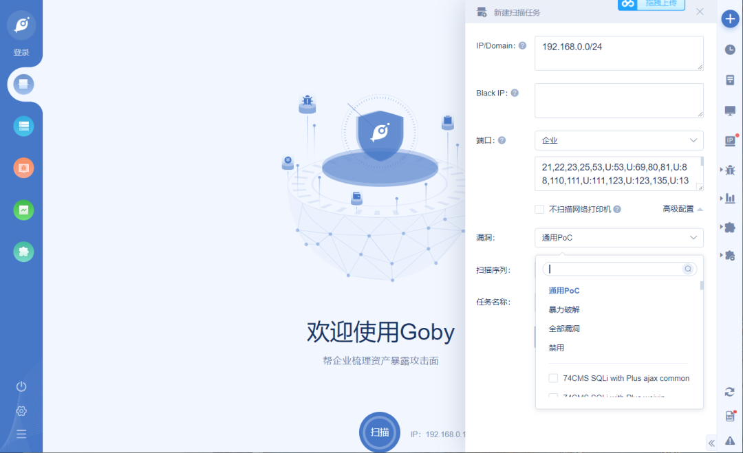 2.点击扫描,新建扫描任务。(不仅可以扫ip,还可以扫域名)