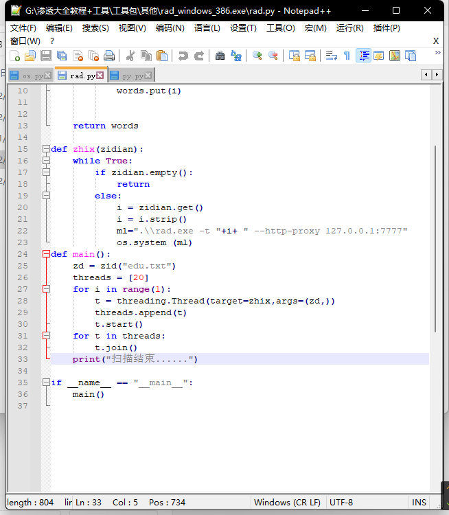 3、将爬取到的这些url放进rad.exe所在目录下备用,保存格式为txt,像这样