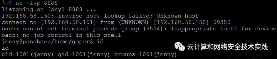 kali攻击机上再开个反弹shell监听,nc -lvp 8888,