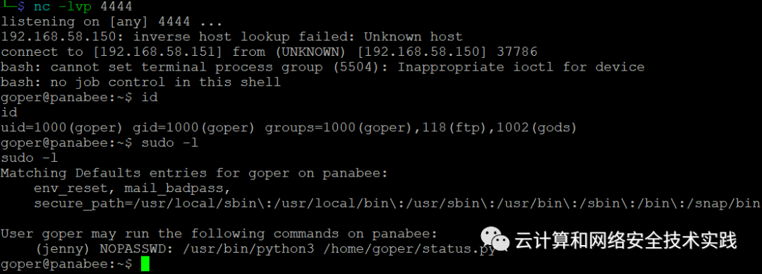 执行,sudo -u jenny /usr/bin/python3 /home/goper/status.py,