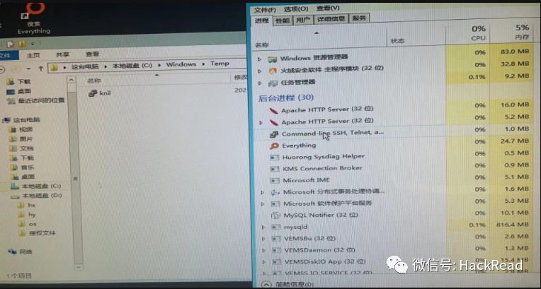 通过互联网对该挖矿病毒家族团伙进行信息收集,大都使用powershell脚本反射式加载xmrig进行无文件挖矿,但是这里我对netstat查看到的矿池进行tasklist PID查看到一个8991d9.exe文件,再通过Everything软件查看到这个文件居然存在的Windows/tmep目录,该目录居然是这次应急处置病毒的Home,就这么简单?