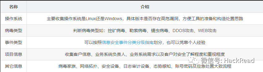因为检测和处置的时间安排了明天,在这个时间里可以收集一下信息,这里给大家一个自己总结的信息收集表。