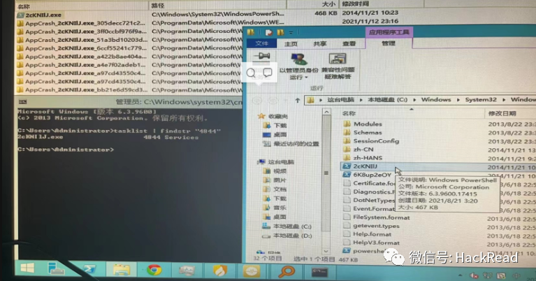 利用tasklist命令查看PID,锁定程序为PowerShell恶意脚本文件(这个应该是内网扫描脚本,可能是通过计划任务来定时调动此脚本,可以删除此脚本后排查一下任务计划项),直接kill掉。