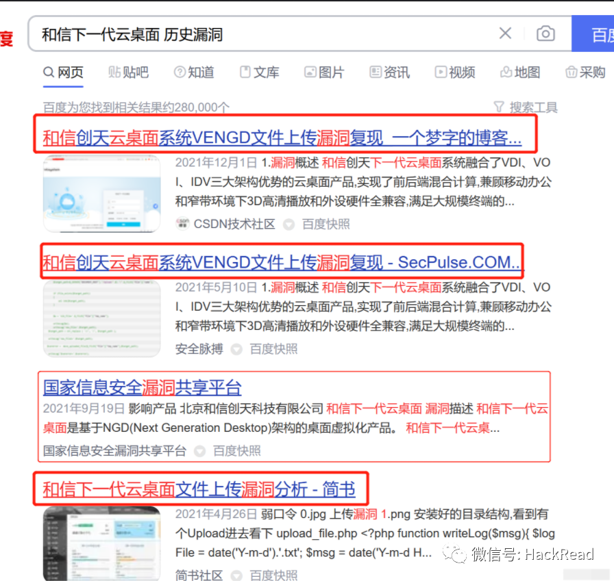 通过搜索引擎搜索和信下一代云桌面系统历史漏洞