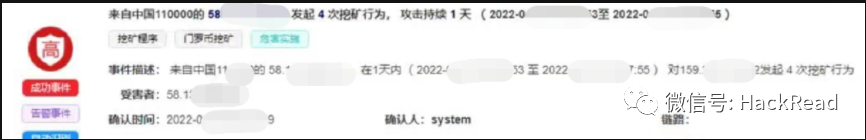 三台机器被入的挖矿都为DTStealer,内网横向,访问矿池。和信下一代云桌面系统被入侵的时间需要再次详细排查。因为不知道操作系统是否存在漏洞、操作系统以前是否为弱密码,初步认为造成被入侵的原因是历史漏洞+WEB管理员弱密码。