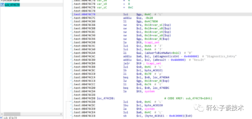上面的这些指令大致意思是 byte_4c0160的值给s2,s2给a0,然后t9 执行sprintf,然后t9 加载pthread_create指令,然后加载函数sub_474C78