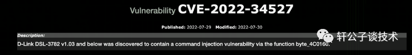 D-Link DSL-3782存在命令注入漏洞,该漏洞源于管理页面存在命令注入点。目前没有详细的漏洞细节提供。