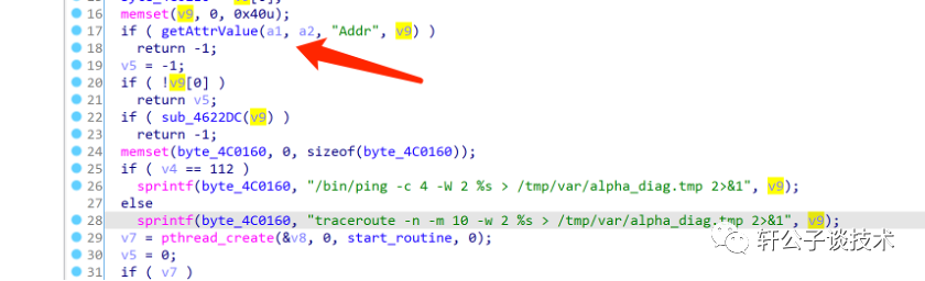 主要关注28,29行,byte参数由 v9传递,然后再去调用start_routine