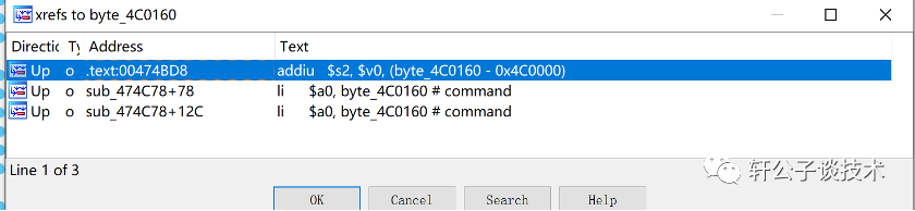 在x86汇编里,add是相加,在mips中 addiu也是加,这个汇编指令就是 v0+byte_xxxx 的值给v2