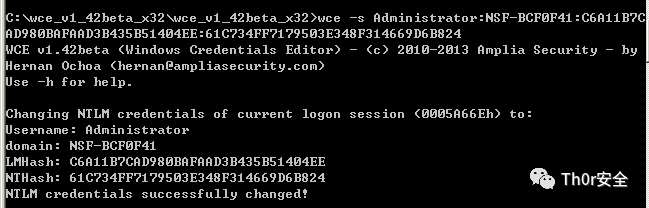 摘取后注入 (wce路径下执行 wce.exe -s +hash )