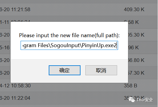 在低版本的搜狗输入法的根目录下有pinyinup.exe用来跟新词库,因此可以利用更改过名字的木马来伪装,当搜狗输入法更新词库时便会完成提权