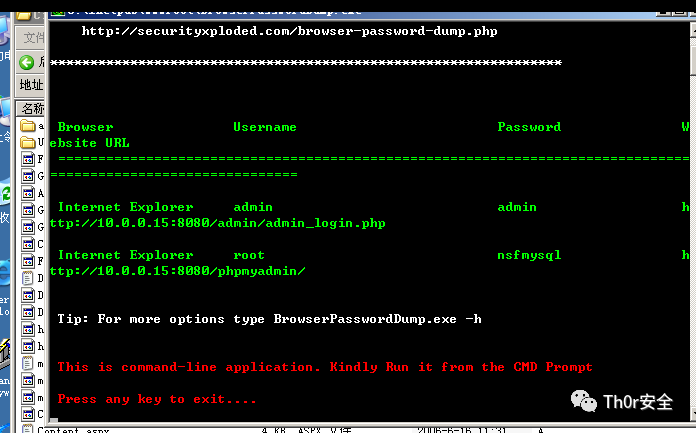 上传BrowserPasswordDump.exe 并启动