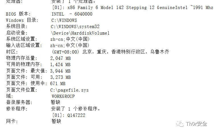 eg:通过systeminfo查询相关补丁信息,查看是否有可利用的exp。